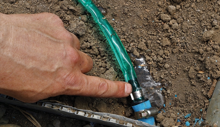 “After the water is on, I put a pressure gauge on the downside of the backflow-prevention device, and if you have any leak, it will make the gauge drop quickly,” Shiflett says. “If you have a leak, even a midsize to small leak is going to show pretty quickly.”