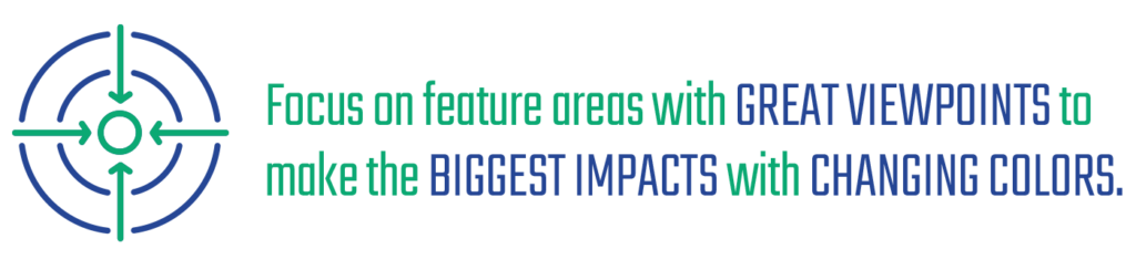 “Focus more on feature areas or areas with great viewpoints to select the lamps that will produce the biggest impact by changing colors,” Qualls says.
